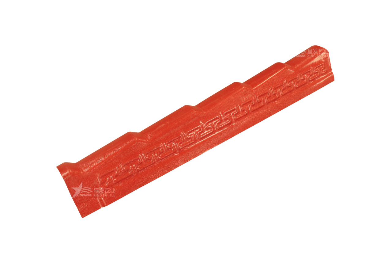 樹脂瓦配件-正脊瓦:用于覆蓋屋脊的樹脂瓦配件。它們與主瓦相匹配,保護屋頂的最高點,確保防水和排水效果。