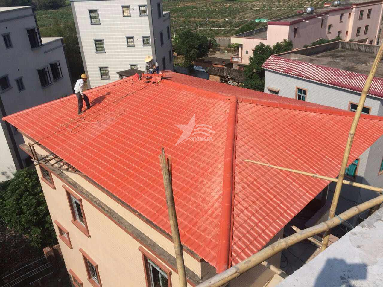 在完成防水層的鋪設(shè)后,再覆蓋保溫層和樹(shù)脂瓦,從而完成整個(gè)屋面的防水、保溫和瓦板覆蓋工作。