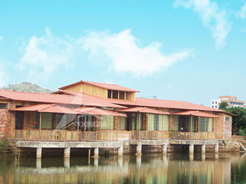 輕盈易施工: 相較傳統瓦材,合成樹脂瓦更輕便易搭建,提高了施工效率,降低了綜合成本。